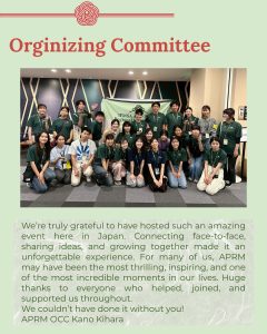 今年度のAPRMは約60名のIFMSA-Japan Staffが運営に携わるなど、IFMSA-Japan全体が一丸となって国際的な繋がりを深めました。また、他国の学生にIFMSA-Japanや日本の魅力を知ってもらう貴重な場となりました。